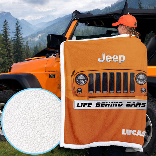 Personalized Jeep Life Behind Bars Sherpa Blanket