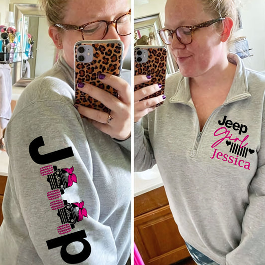 Personalized Multicolor Jeep Girl US Offroad Quarter Zip Sweater Hoodie